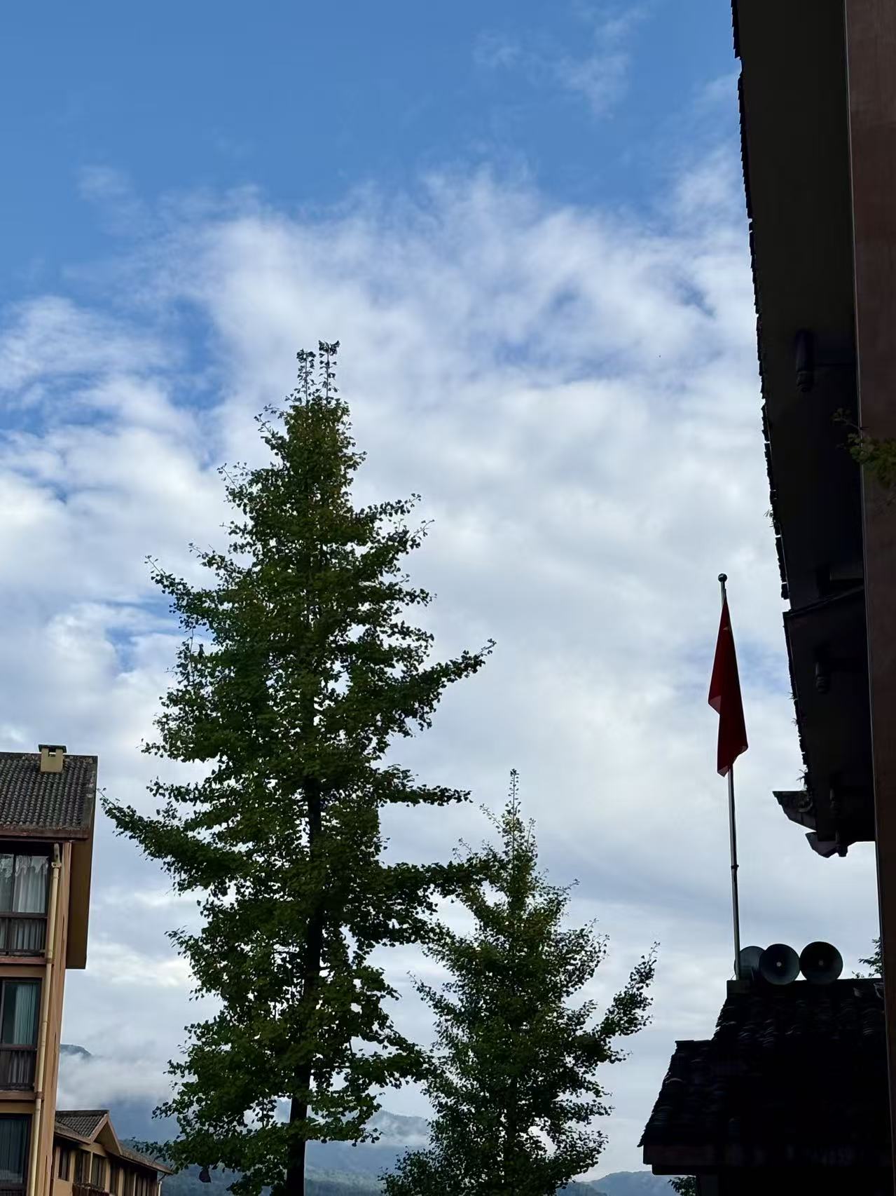 云下树荫与红旗