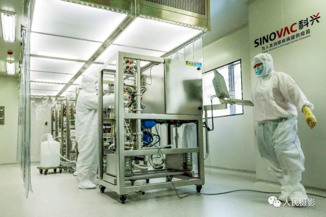 2020年12月23日,科兴中维的工作人员在新冠病毒灭活疫苗质检实验室内进行检验。