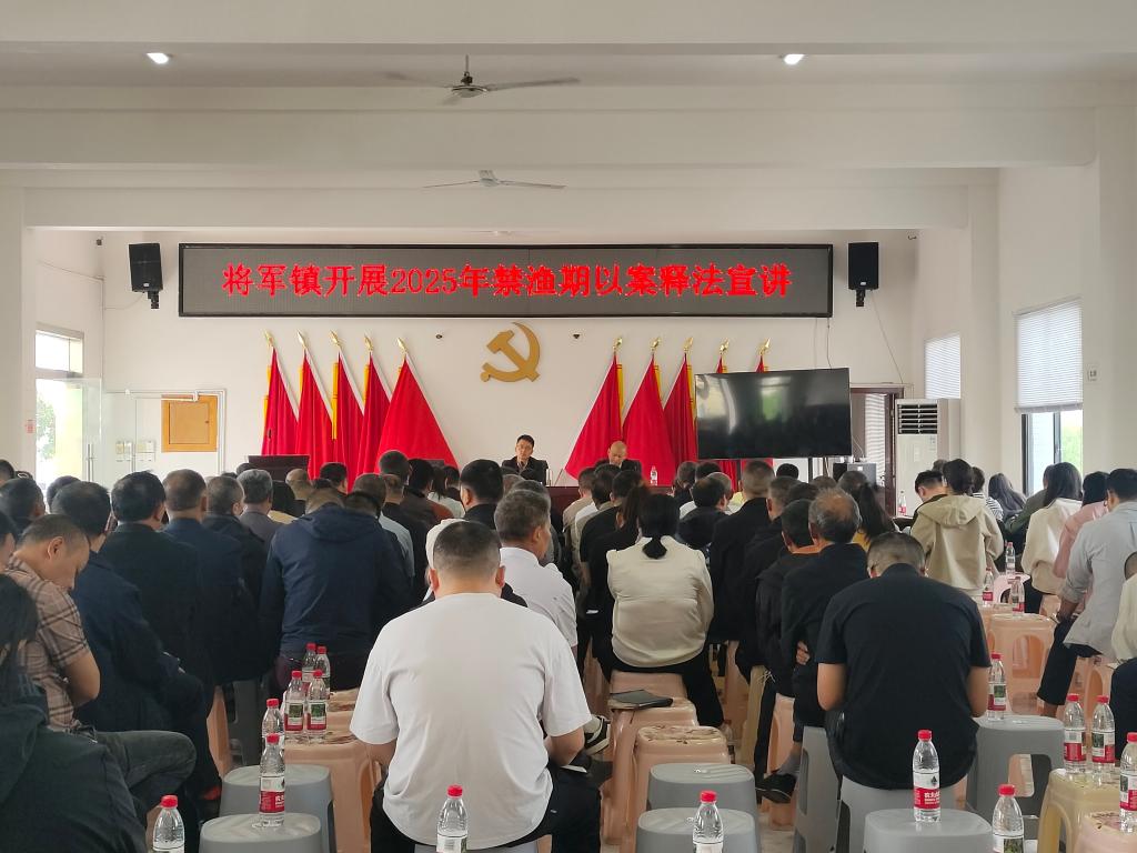 为进一步加强水域生态环境保护,推进生态文明建设,促进人与自然和谐发展,2025年4月16日上午,将军镇组织开展禁渔期以案释法宣讲活动,镇村组三级干部共计200余人参加。