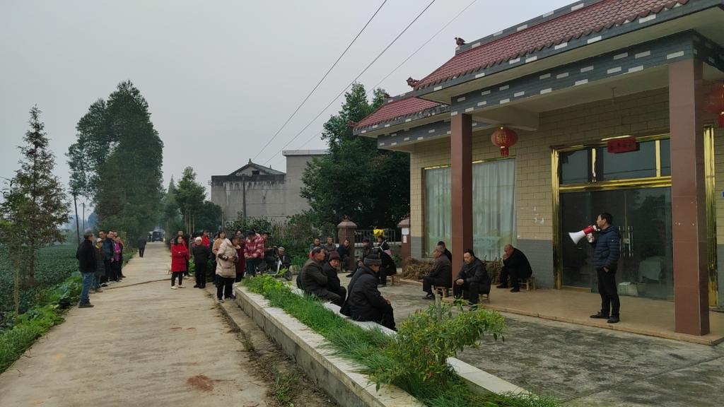 11月18日,余坪镇桐梓村包村干部及桐梓村村组干部通过召开群众会等方式宣传耕地恢复。