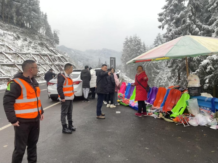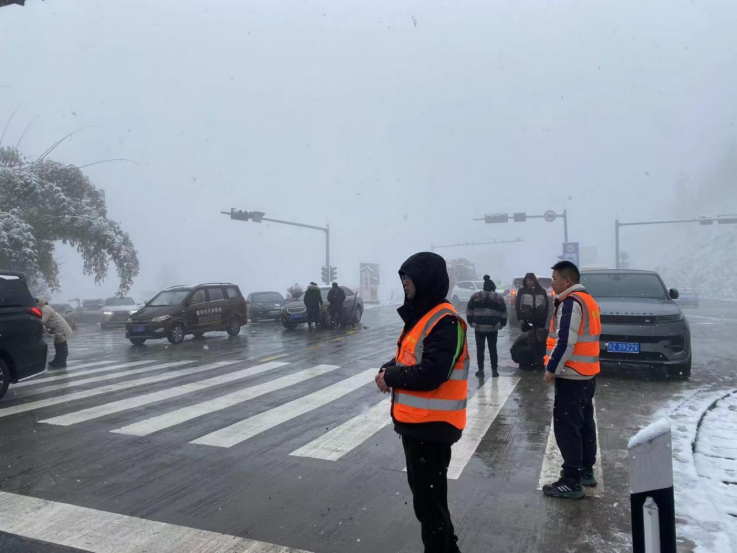 加强值班值守,交通劝导到位。严格落实24小时值班和领导带班制度,全力做好突发险情应对处置。召集党员、干部组建60人应急救援队,划分为3个小队,轮流在西环线、瓦屋山快速通道等重点路段开展交通指挥疏导、路面撒盐融冰、冰雪道路临时管制、被困游客救助等工作,保障交通安全。 |