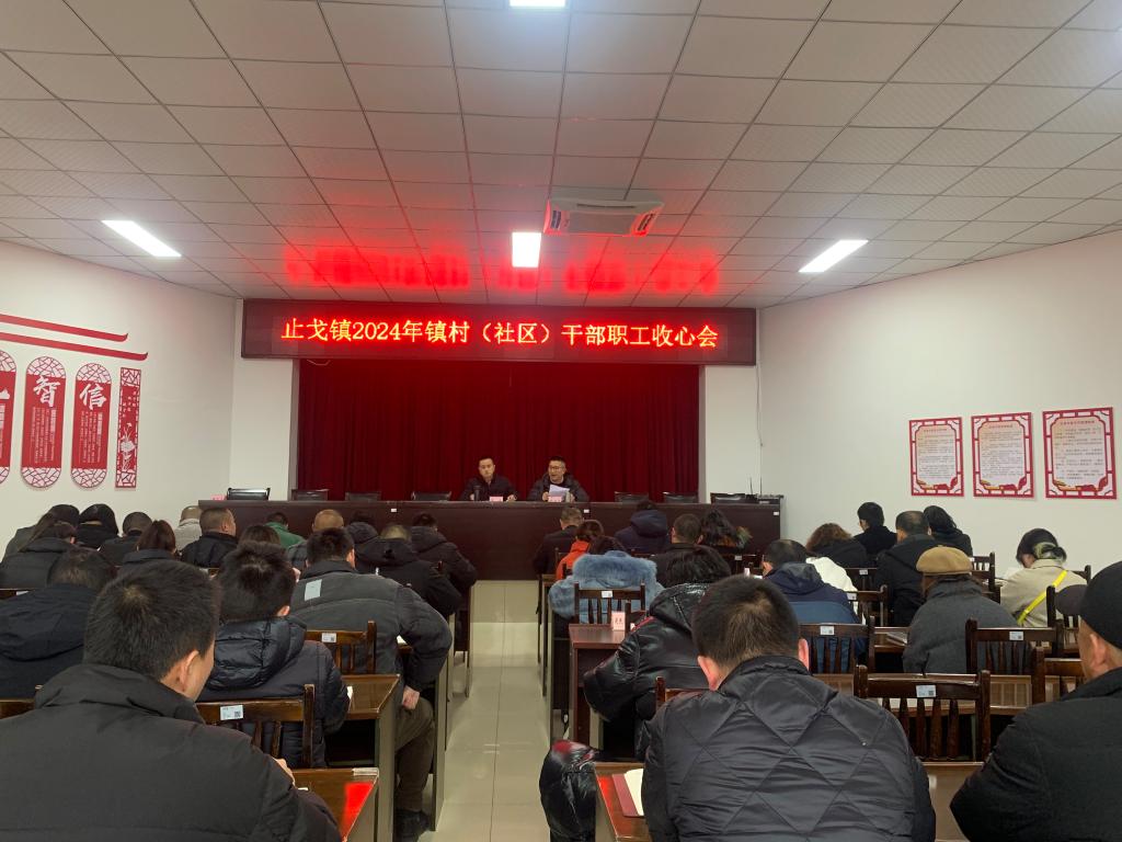 2024年2月26日上午9:00,止戈镇组织镇、村(社区)干部召开2024年镇村(社区)干部职工收心会,会议强调,全体镇村(社区)干部要调整好心态,做到人到岗、心到岗,迅速把思想和精力转移到工作中来,推动全年各项工作任务起好头迈好步。