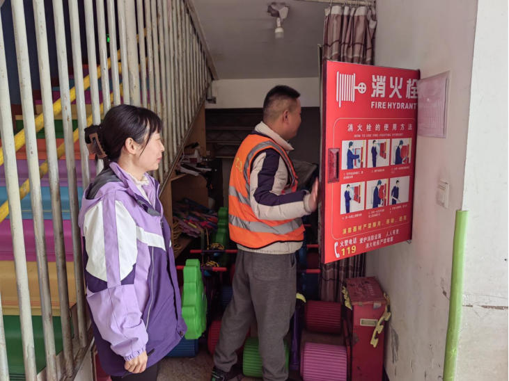 2月26、27日,柳江镇组织党员干部在辖区内开展节后消防安全检查,对学校、工地、饭店、商铺、物流等人员密集场所进行排查,检查其灭火器配备、电器线路、用火用电等情况,发现隐患问题及时整改,同时宣传消防安全的重要性。