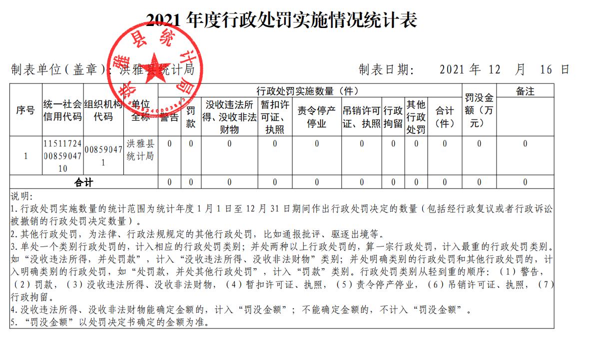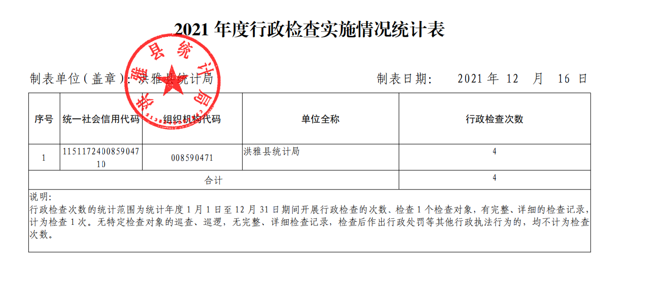 2021年度洪雅县统计局行政执法监督情况