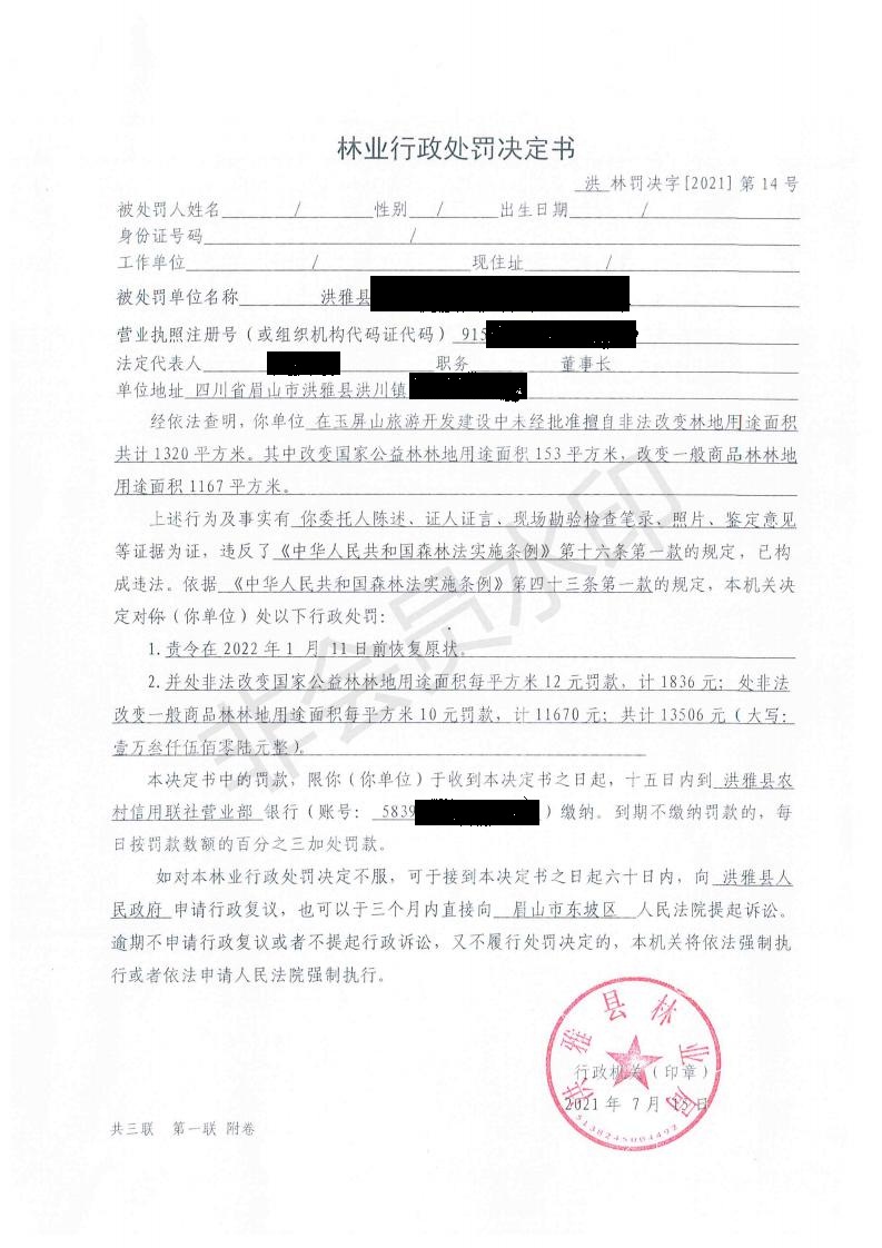 洪雅县林业局林业行政处罚决定书洪林罚决字〔2021〕14号